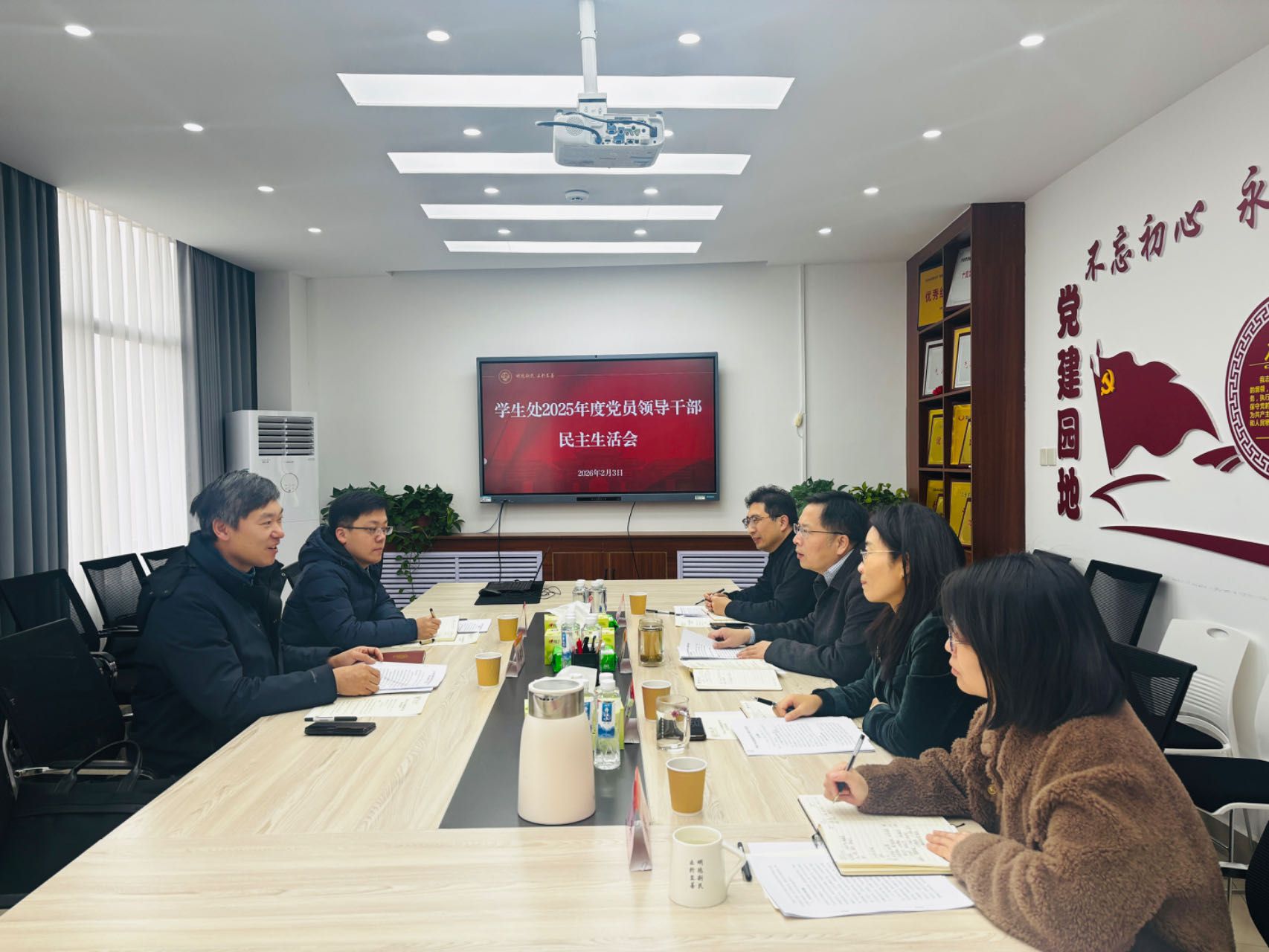 2月3日上午,学生处在金明校区行政楼455会议室召开2025年度处级党员领导干部民主生活会。督导组工作人员、校纪委正处级纪检监察员郑铭勋、法学院党委办公室负责人赵帅到会指导。会议由学生处处长、党委学生工作部部长樊小勇主持。